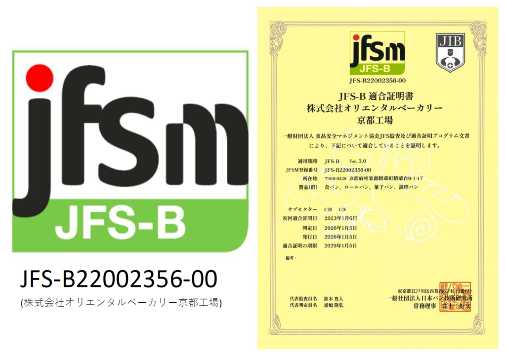 段階的に取り組んできた準備が実を結び、当社は2023年1月、京都工場にて「JFS-B規格」を取得。外部認証により、お客様により安心してご使用いただける体制を築きました。