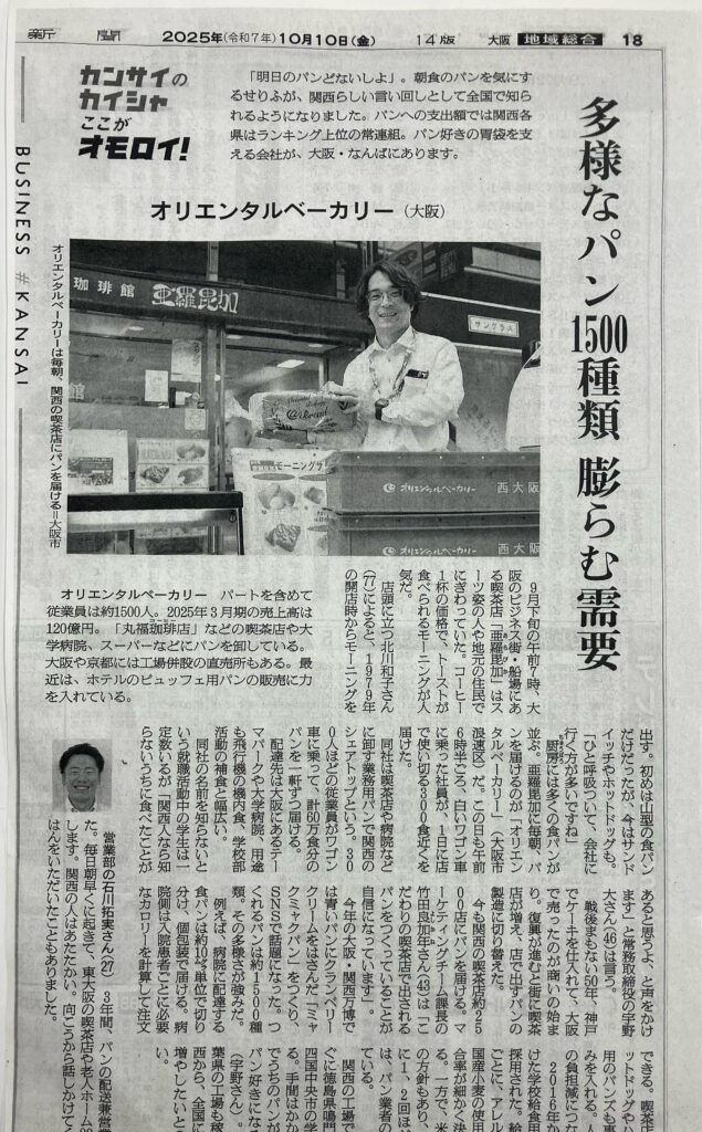朝日新聞に掲載されました!(カンサイのカイシャここがオモロイ!「オリエンタルベーカリー」)